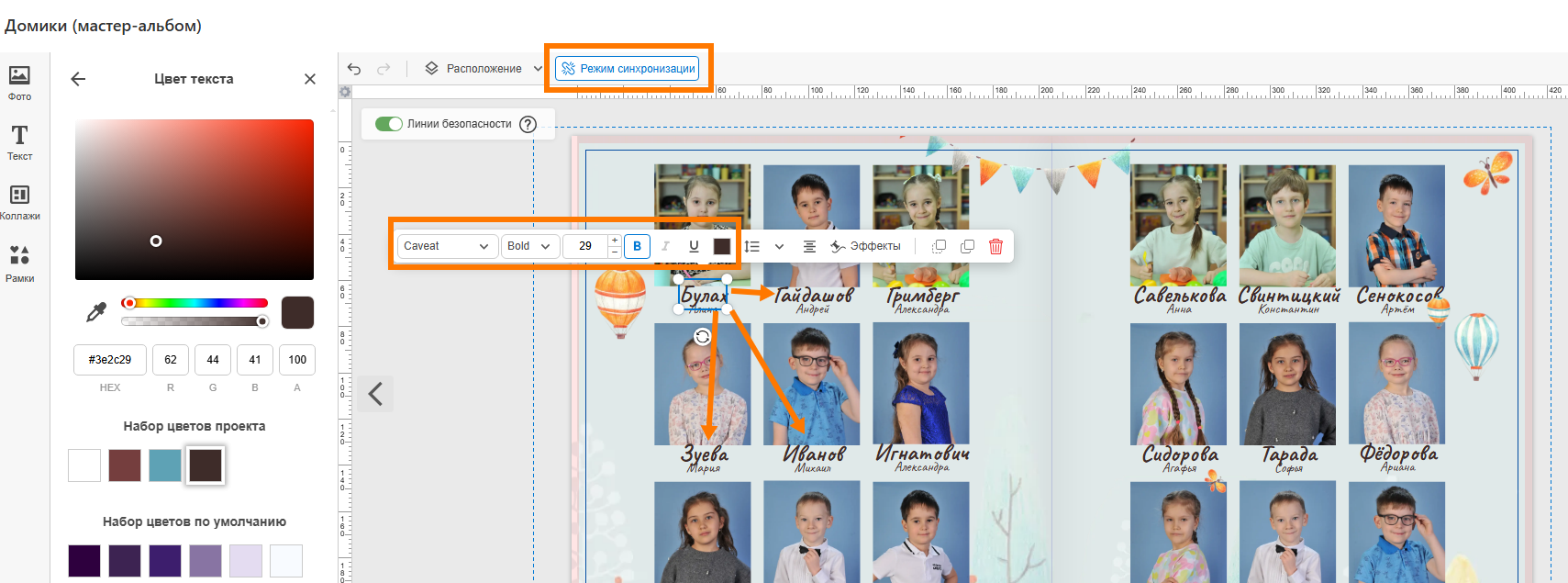 Иногда при подготовке дизайна требуется одновременно изменить внешний вид виньетки или всех портретов учеников (даже если они расположены на разных разворотах). Для этого необходимо: