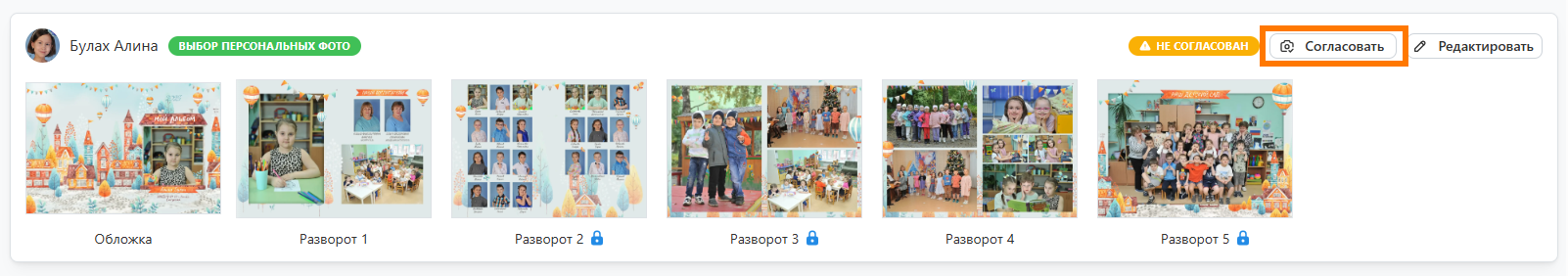 - Далее потребуется утвердить альбом нажатием кнопки “Утвердить“.