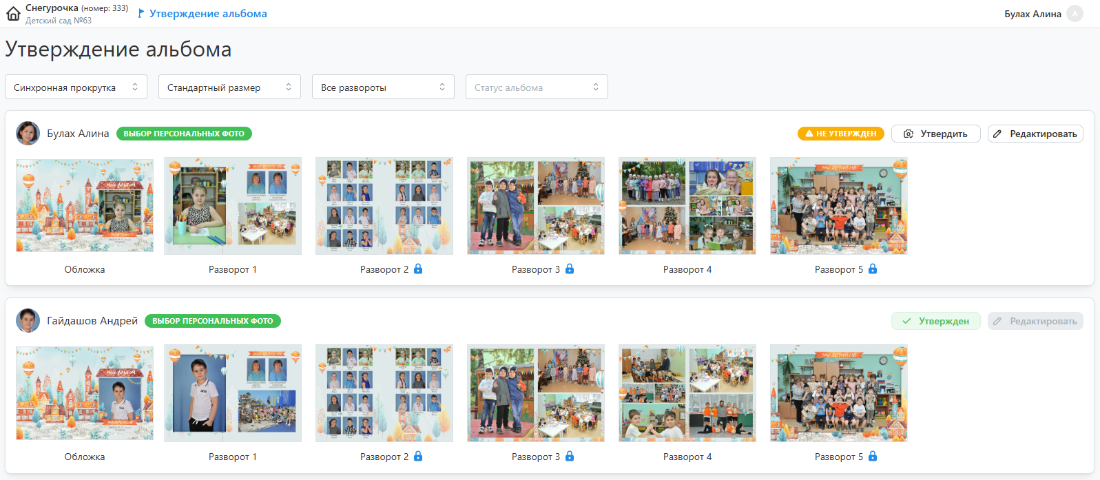 - В соответствующем разделе личного кабинета вам будут представлены предварительные дизайны альбомов учеников, фотографии в которых еще не прошли обработку.