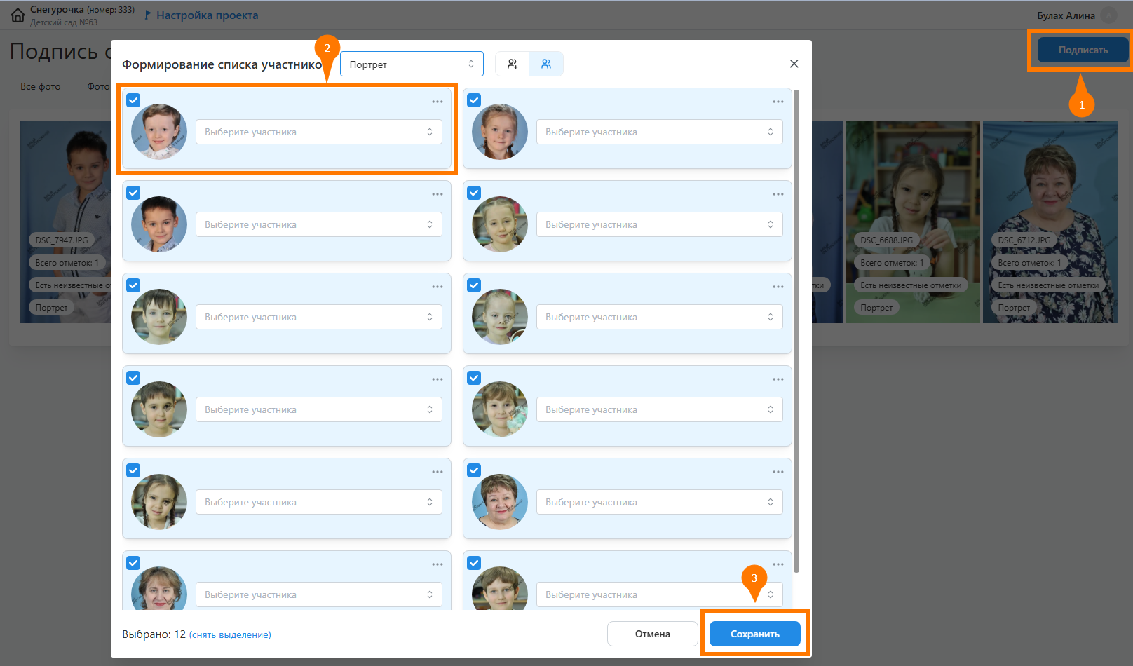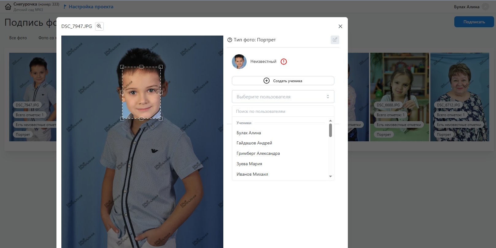 - Подпись портретных снимков для распределения фотографий по ученикам.