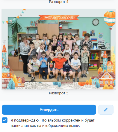 - В соответствующем разделе личного кабинета вам будут представлен финальный вариант альбома с отретушированными фотографиями. Отметим, что альбом будет напечатан именно так, как вы видите.