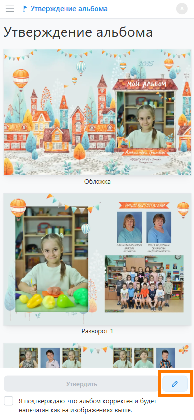 - Утверждение альбома с внесением правок.