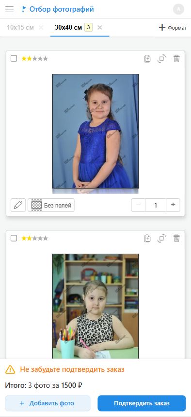 - На втором - выбрать фотографии для каждого и з указанных форматов.