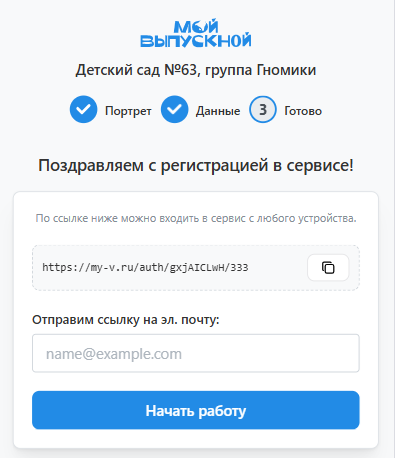 - На последнем - нажать кнопку "Начать работу". И при желании сохранить персональную ссылку.