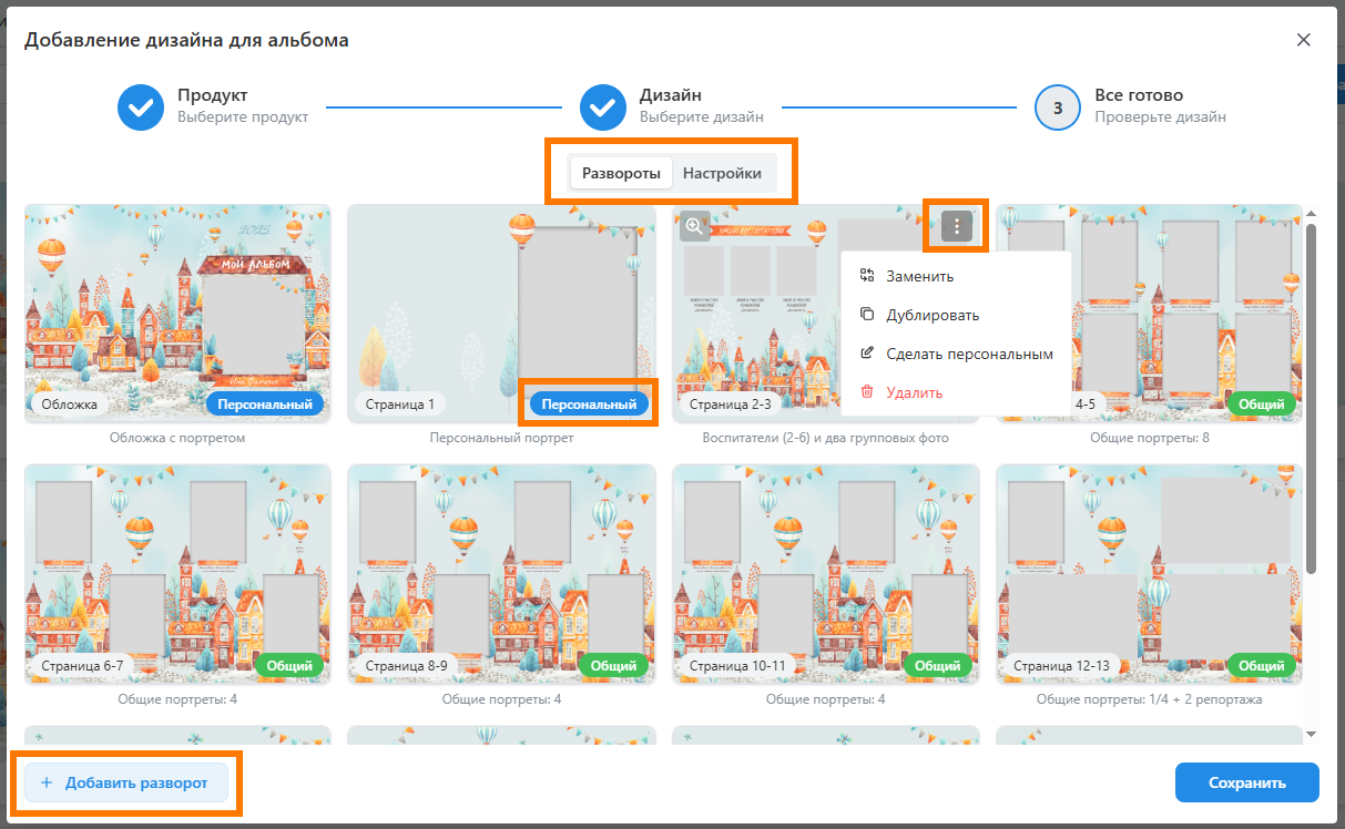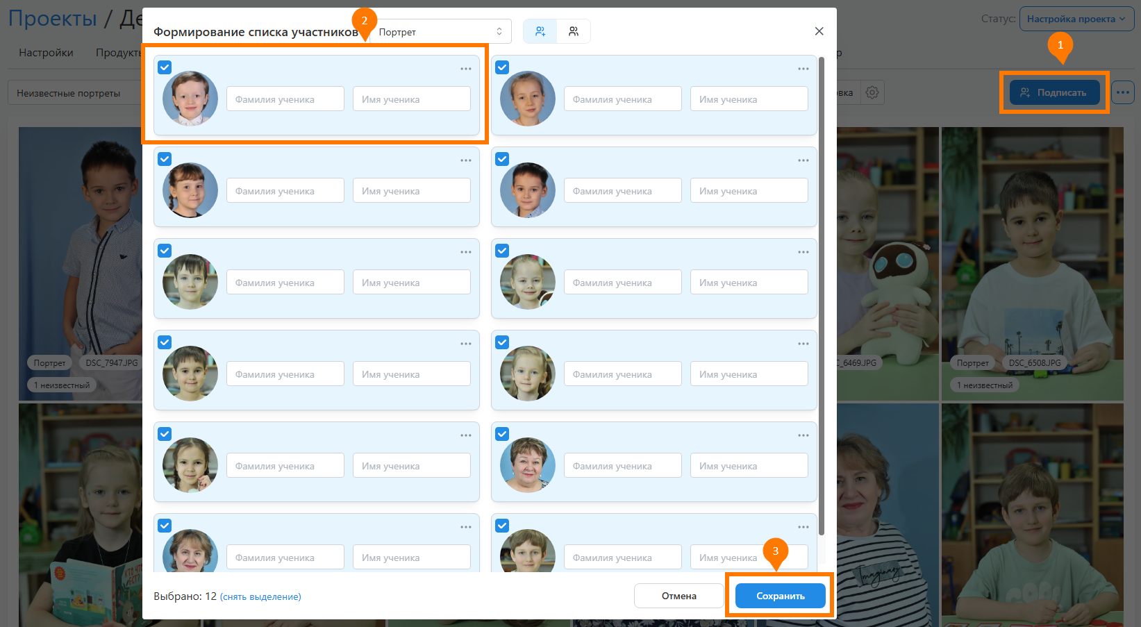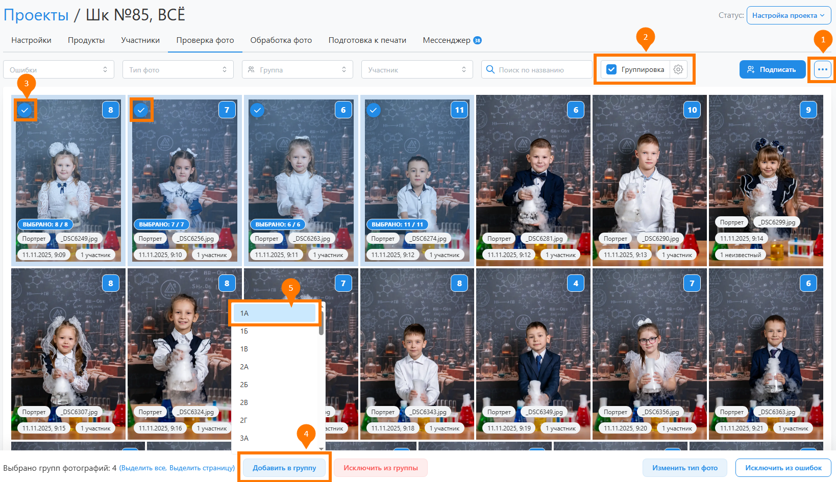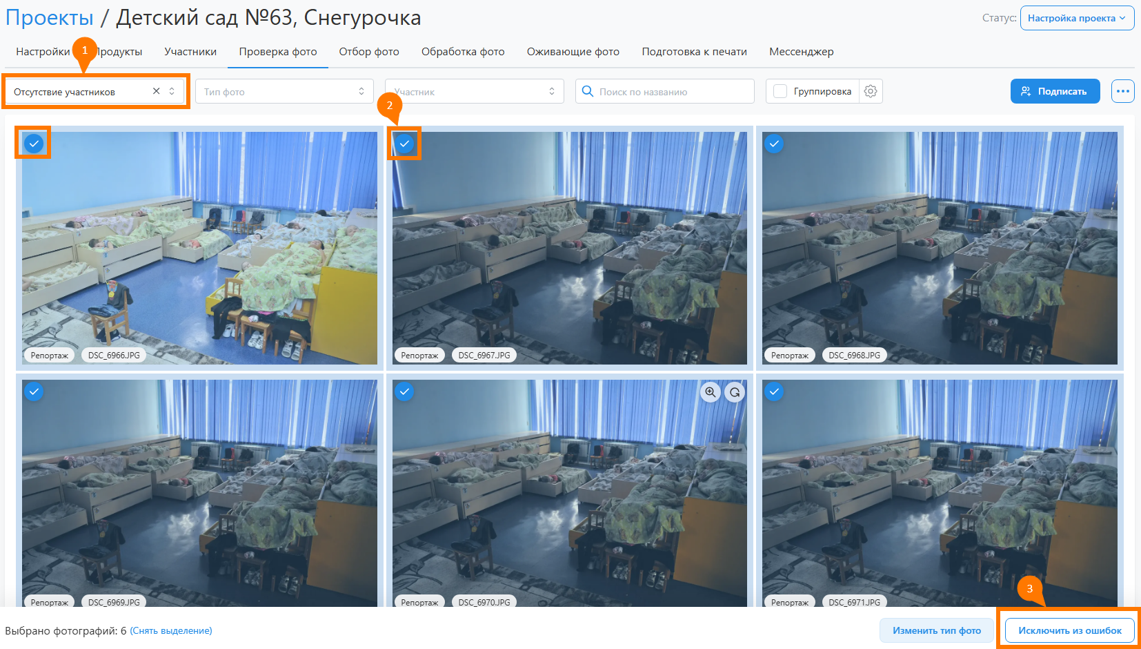 - Единственной настройкой, значение которой задется только на уровне проекта, является ограничение выбора портретов. Она разрешает для перечисленных портретных рамок выбирать лишь одну фотографию.