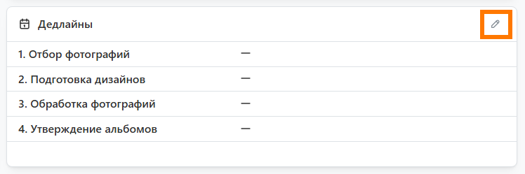 - Доп. номер - содержит дополнительную характеристику проекта. Например, номер договора или идентификатор сделки во внешней CRM-системе.