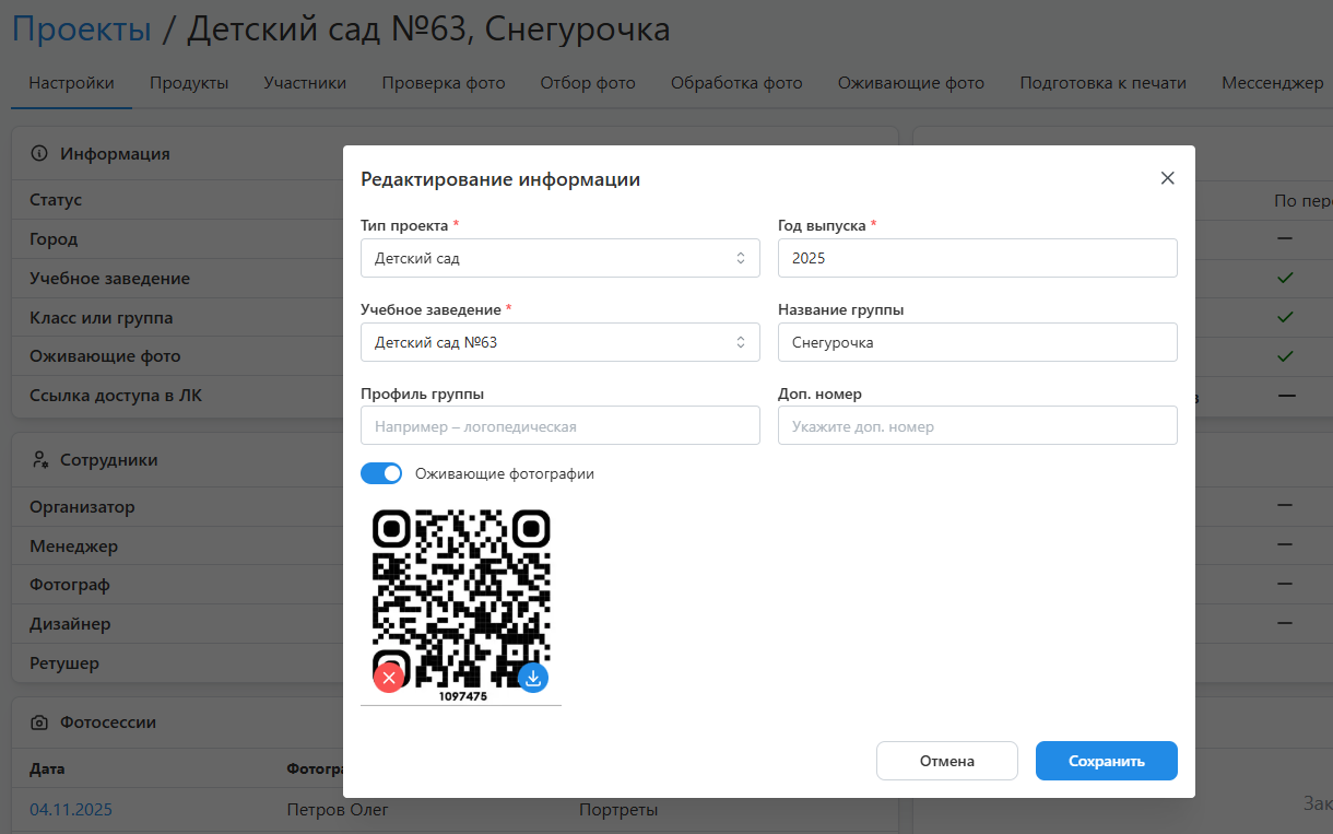 - Оживающие фотографии - включает функционал дополненной реальности. При его активации допускается загрузка QR-кода для размещения в дизайне, если используется стороннее приложение.