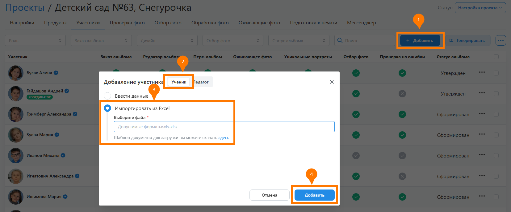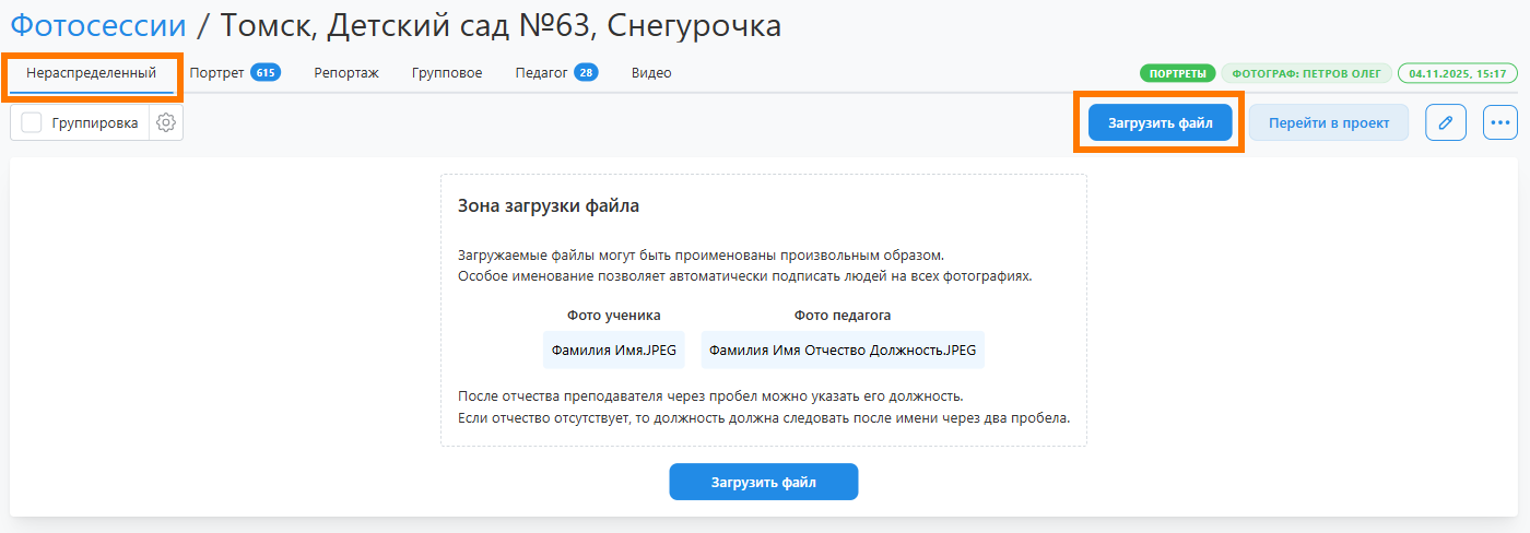 - Класс / Группа - название класса или группы.